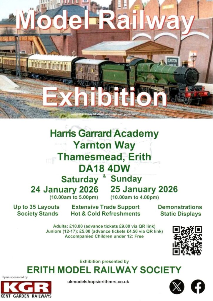 The Erith Model Railway Society’s January Exhibition, one of South East England’s largest shows, will be returning to the Harris Garrard Academy. The show will continue to encompass around 30 layouts, extensive trade and society support, demonstrators and static exhibits, making almost 100 stands in total.