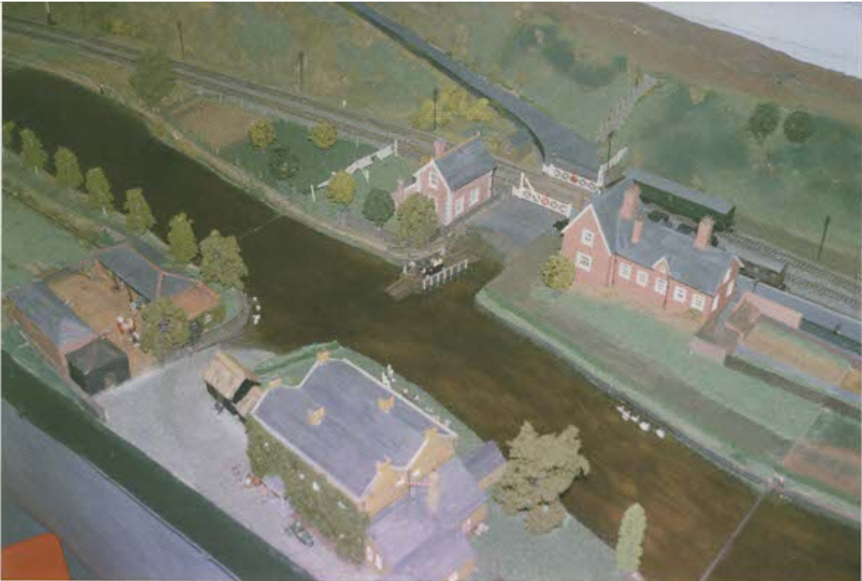 One of the most distinctive features of both the station and the layout is the chain ferry across the nearby River Stour. Despite several attempts to replace it with a bridge, the ferry remained in use until the 1960s. It was owned and operated by the adjacent Grove Ferry Hotel, which also grew 17 acres of lavender around the station.